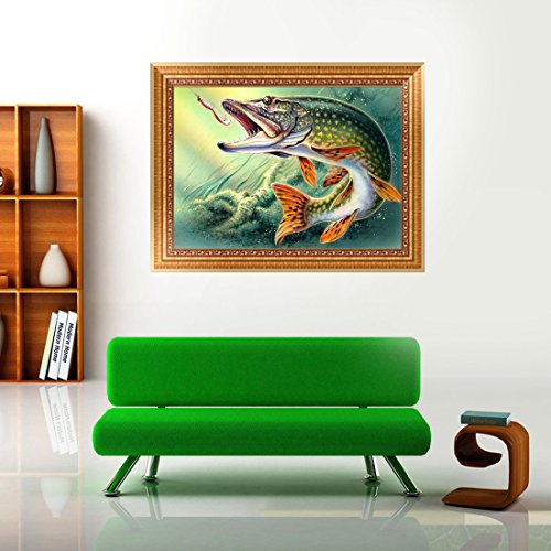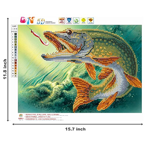 DIY 5D Diamond Painting by Number Kit, Fishing Square Rhinestone Embroidery Cross Stitch Ornaments Arts Craft Supply Wall Decor