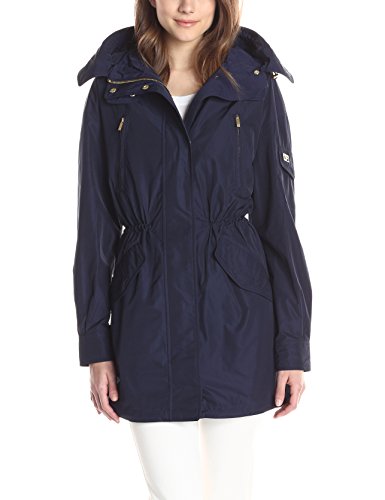 Packable zip-front jacket featuring high/low fishtail hem and cinched waist