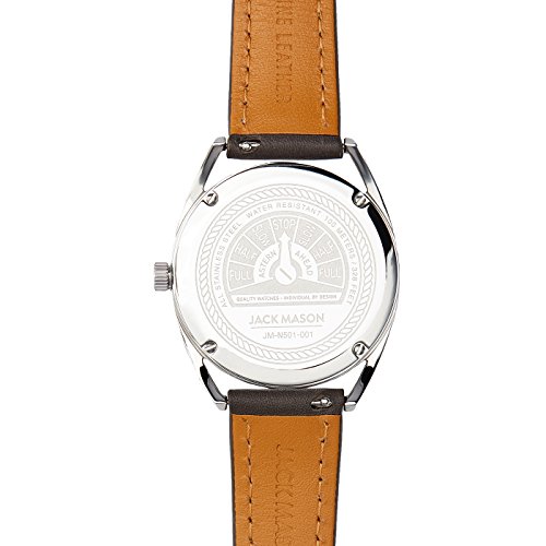 The Slim Nautical Collection is feminine and timeless. The Slim Watch 38mm features a minimal easy-to-read dial. The stainless steel wire-lug case is ideal for everyday wear. As versatile as it is class, the Deck-inspired slim watch straps are interchangeable with any 18mm straps. As a subtle homage to the Texas flag, the second hand is hit with a subtle red, white and blue marking. The crown is etched with a Texas lone star as an homage to Jack Mason's roots. The Slim Watch 36mm JM-N501-001 is water-resistant at 10ATM for comfortable wear when exposed to water. The caseback is etched with the ships engine order as a final hat tip to the Nautical influence of the collection.Feature