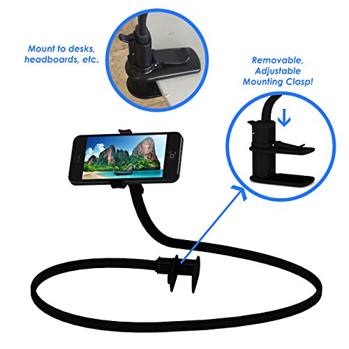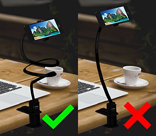 MAXIMUM VERSATILITY - Adjustable to any angle. The smartphone clasp will hold your cell phone firmly with 360 degree full swivel viewing. Removable mounting clamp attaches to most furniture. Ease of use is unmatched. Adjustable Coil and swiveling clasp makes it east to view your smartphone at any angle. Not to be used straightened out.
