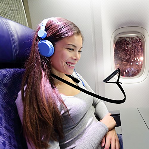 PERFECT FOR TRAVEL - Cell Phone holder fits comfortably around neck, for use on airplanes, trains, road trips, buses, in bed, on the couch or just about anywhere. Portable cell phone holder bends to tight coil for storage, space saver great for travel.