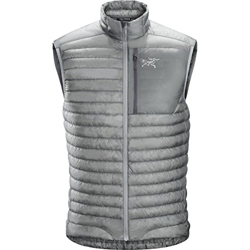 Studio : Arcteryx Publisher : Arcteryx Product Description FEATURES of the Arcteryx Men's Cerium SL Vest Super lightweight Arato 7 face fabric with DWR finish repels moisture and is remarkably wind resistant for the weight Down Composite Mapping strategically places synthetic insulation in areas prone to moisture and 850 fill down in the areas where the most warmth is needed Synthetic Coreloft down dries quickly and retains warmth when wet 850 Fill down has the highest warmth to weight ratio and is extremely compressible Conforms to your body, trapping heat closer to your core, which is good Lightweight and minimal center front zipper Collar height provides warmth while the low profile makes for easy layering Single external chest security pocket Compresses into it's own stuff sack included in the pocket Elasticized rear hem seals out drafts At only 4.1 oz this vest is a perfect stowable layer for any activity 0