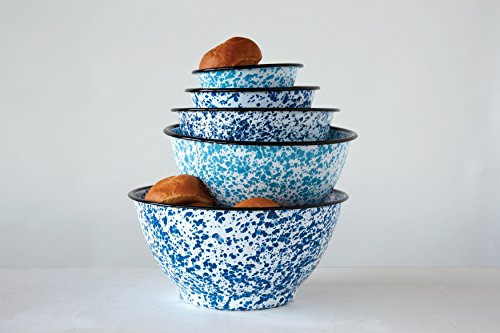 Creative Co-Op Blue Splatterware Enameled Bowls Set