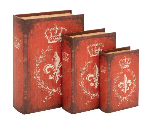 Plutus Brands Unique Wood Book Box with a Bold Red Finish, Set of 3