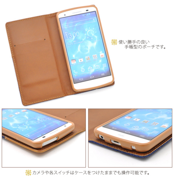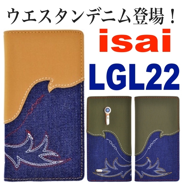 isai LGL22用のウエスタンデニムケースポーチ。