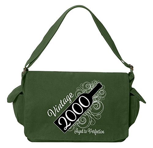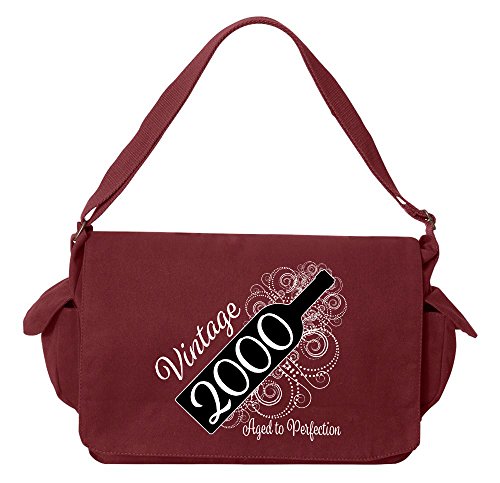 Studio : Tenacitee Publisher : Tenacitee Binding : Personal Computers Product Description Born in 2000 - Aged Like a Fine Wine Brushed Canvas Messenger Bag by Tenacitee. Express yourself! No boring bags here, this messenger bag is custom printed in our Oklahoma shop just for you. Made of 12oz 100% soft brushed cotton canvas this bag is perfect for telling the world what you think while you're out and about town. We use the latest Direct to Garment printing technology for a vibrant and soft print with less wasted ink. The bag is machine washable, has several inside zippered pockets, an interior key leash hook, and a 2" wide adjustable shoulder strap. The bag measures approximately 16"x11.5"x4.75". 0