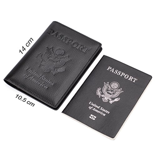 Features: - Premium synthetic leather -1 pocket for passport, 1 pocket for boarding pass, 1 hidden pocket for some bills, 3 card slots (include 1 id window slot) - Measures 5.5 x 4.15 inches (14 x 10.5cm) - RFID signal blocking