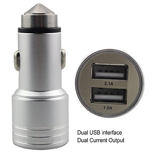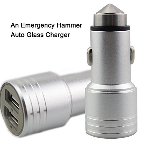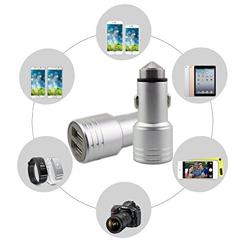 Zojoro Car charger 3.1a / 15w Dual USB Ports Car Charger with Car Escape Emergency Safety Hammer Function -Rapid Portable Travel Charger for Smartphone/tablets (Silver)