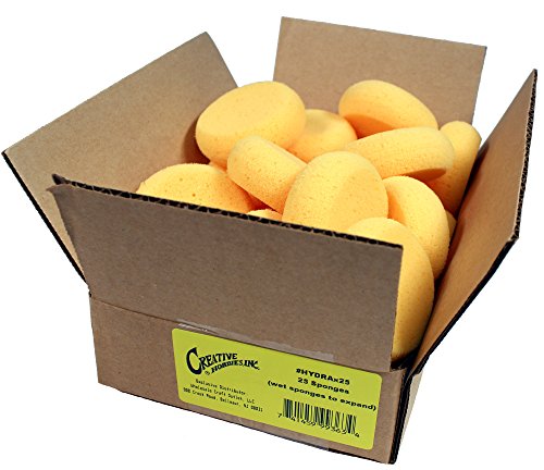 For great savings in a high quality imitation sponge, these hydra sponges can't be beat. They are manufactured with a smooth texture to look and feel similar to a natural silk sponge and can be used for anything from smoothing clay in ceramic or pottery projects, applying paint in household or craft projects to washing dishes. They are gently curved at the sides and somewhat flattened at the top and bottom. Each sponge measures 2 - 2/12 inches when wet. They are supplied to you in a dry, compressed state and need only to be wet to attain their full size and shape. They are clean, uniform and fit comfortably in your hand. You get 25 sponges in this lot for one low price!Feature