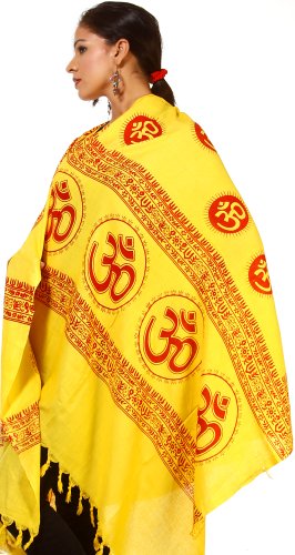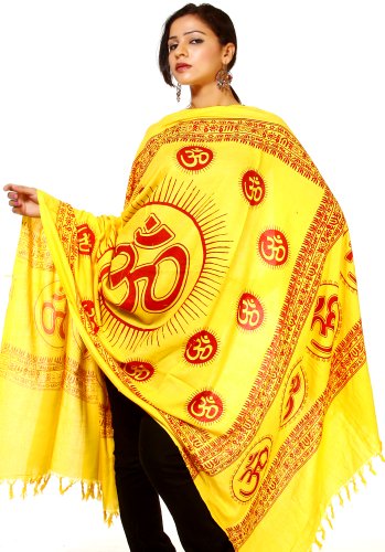 -. Title : Exotic India Yellow Hindu Dharma Prayer Shawl with Large Printed Om