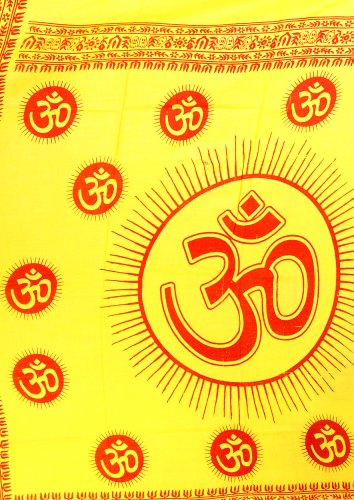 -. Feature : Yellow Hindu Dharma Prayer Shawl with Large Printed Om / PolyCotton / Made in India / Dimensions: 3.5 ft x 6.7 ft / Hand wash
