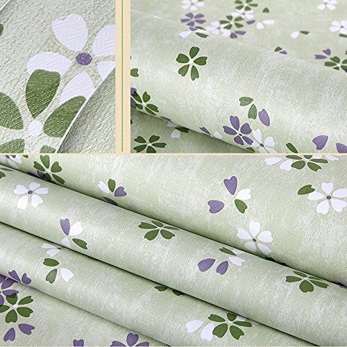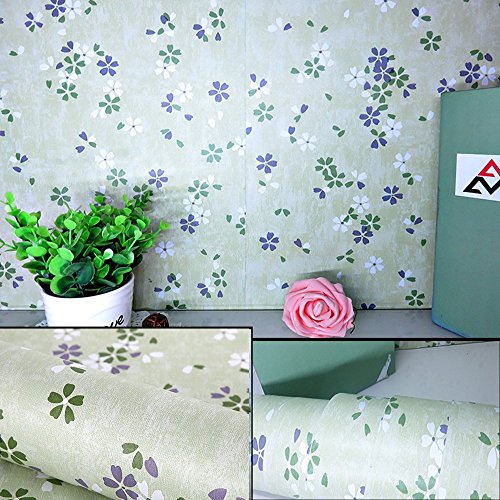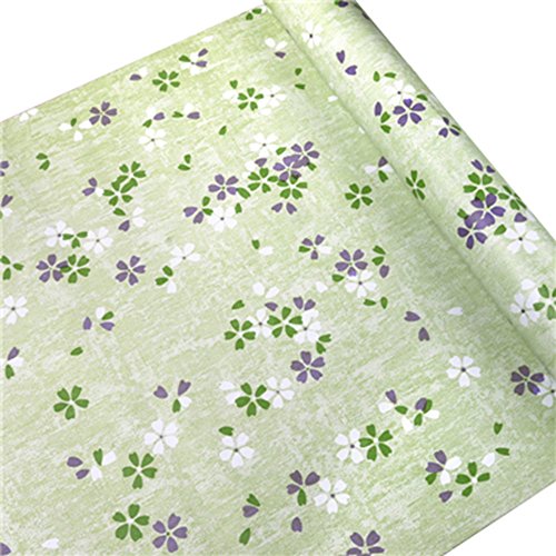 HOYOYO 17x78 Inches Self Adhesive Shelf Liner Contact Paper, Moisture Proof Drawer Paper Shelf Liner Mildew Proof Antifouling wall Paper, Green Flowers