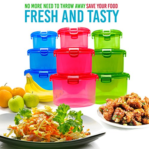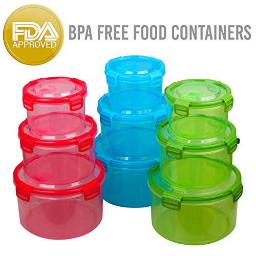 Food Storage Containers Set | 18 Piece | Plastic Air Tight Sealed Lunch Boxes With Lids | Microwave-Dishwasher-Freezer Safe | BPA Free FDA Certified | Reusable Leakproof | 3 Colors CIRCLE | By Amazix