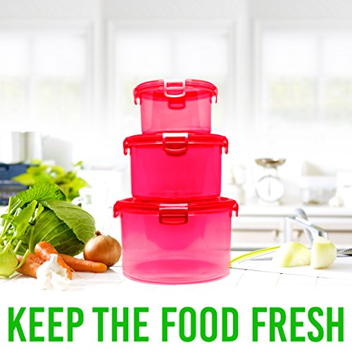 - ★ 18 PIECE SET : 3 different CIRCLE SHAPED sizes, capacities & colors, 3 X 1850ml [62.5 Oz] 3 X 1150ml [39 Oz] & 3 X 600ml [20 Oz], Offering great ease to organize. Ready to serve your kitchen needs for a lifetime without Any worry of discoloring or any kind of toxic side effects of the material. Different sizes are perfect for a variety of food from salads to soup etc. IT’S FRUSTRATING TO THROW AWAY LEFTOVERS BECAUSE OF THE LACK OF HAVING THE OPPORTUNITY TO KEEP THEM FRESH & DELICIOUS.