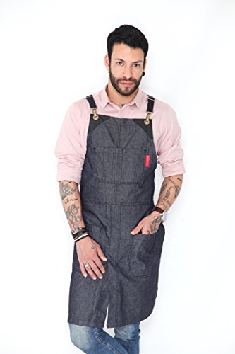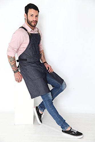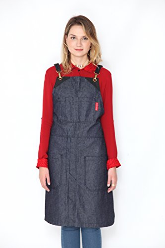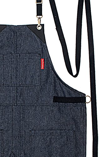 - CROSS-BACK DESIGN – This apron leaves your neck free of any pressure and it is made of durable mid-weight 10 oz denim.