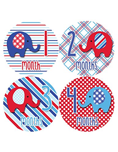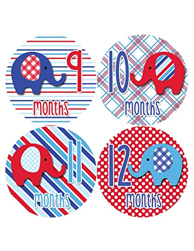 Months in Motion 1031 Monthly Baby Stickers Baby Boy Elephants Months 1-12