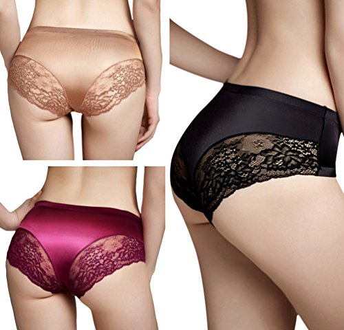 -. Title : TagoWell Sexy Women Panties Seamless Luxurious Ice Satin Silk Lace Stitching Briefs