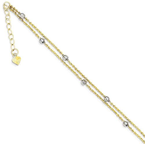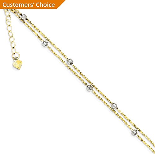 -. Title : ICE CARATS 14k Two Tone Yellow Gold 2 Stand Spiga Mirror Beads 1 Inch Adjustable Chain Plus Size Extender Anklet Ankle Beach Bracelet Fine Jewelry Gift Set For Women Heart