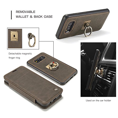 Galaxy S8 Leather Case,HIPICB Slim Folio Book Leather Cover,Detachable Magnetic 360 Rotating Ring Grip Holder Stand Protective Case [Card Slot] [Wrist Strap] for Samsung Galaxy S8 - Black