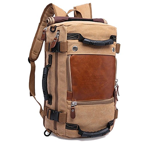 -. Title : Jeff Canvas Hiking Backpack Camping Bag Travel Rucksack Backpack Khaki