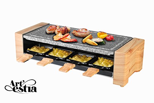 Electric Raclette Grill with High Density Granite Grill Stone by Artestia, Separate Heat Source for Plate and Side Dishes, Serve the whole family. Model number AR-89007