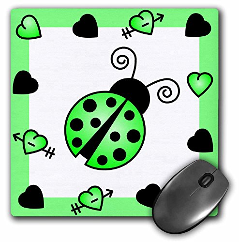 3dRose LLC 8 x 8 x 0.25 Inches Mouse Pad, Love Bugs Green Ladybug with Hearts (mp_12110_1)