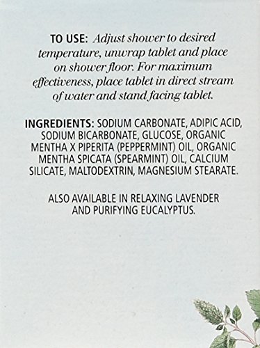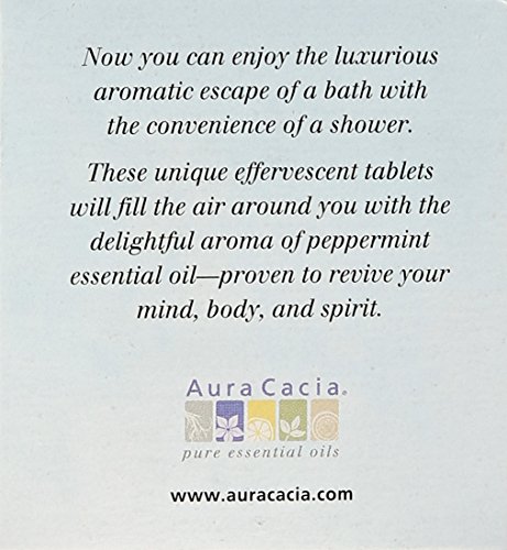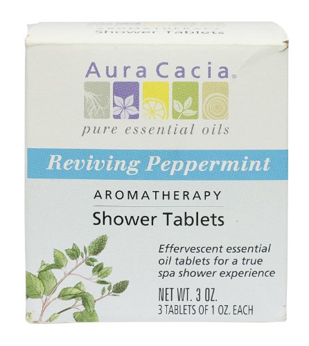 -. Binding : Health and Beauty -. Brand : Aura Cacia -. EAN : 0051381882655 -. Feature : Aromatherapy in your shower / stimulating -. IsAdultProduct : 0 -. Label : Aura Cacia -. LegalDisclaimer : * These statements have not been evaluated by the Food and Drug Administration. This product is not intended to diagnose, treat, cure or prevent any disease. ** Always refer to the manufacturer's label on the product for description, recommended dose and precautions. -. Manufacturer : Aura Cacia -. Model : Aur-3900 -. MPN : AC0599 -. NumberOfItems : 3 -. PackageQuantity : 3 -. PartNumber : AC0599 -. ProductGroup : Beauty -. ProductTypeName : BEAUTY -. Publisher : Aura Cacia -. Size : 3 oz -. Studio : Aura Cacia -. Title : Aura Cacia Aromatherapy Shower Tablets, Reviving Peppermint, 3 ounce (Pack of 3) -. UPC : 051381882655