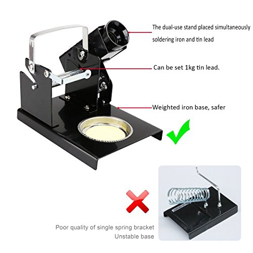 - [Safety] Soldering iron stand’s dual safety design protects users from burn. Ideal for quickly desoldering, this solder reel holder has a weighted iron base and metal construction, which is more stable and protects users from danger.