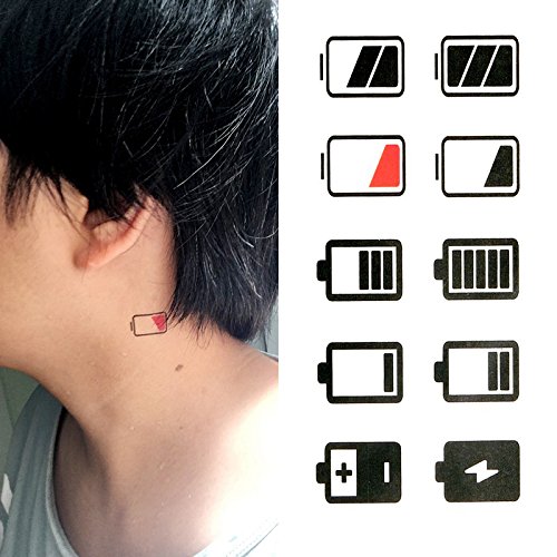 Oottati Small Cute Temporary Tattoo The Battery Is Fully Charged (Set of 2)