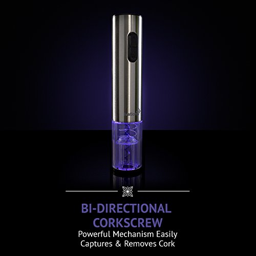 ELECTRIC CORKSCREW EXTRACTOR - Stainless Steel Touch-Button Opener Removes Up to 30 Corks on a Full Charge; See-Through Window for Easy Viewing