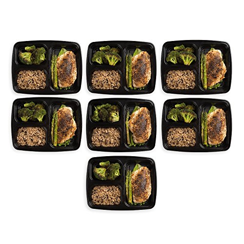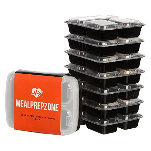 Meal Prep Zone 3 Compartment Food Storage Containers with Lids, Set of 7