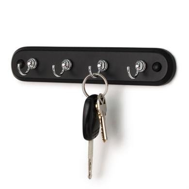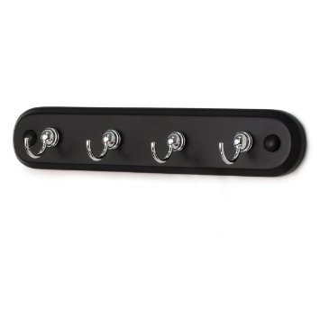 Spectrum 4 Hook Key Rack - (Size: 1 1/2" H X 8 1/2" W X 1 1/2" D) - Color: Black Base/satin Nickel Hooks - 2 Pack