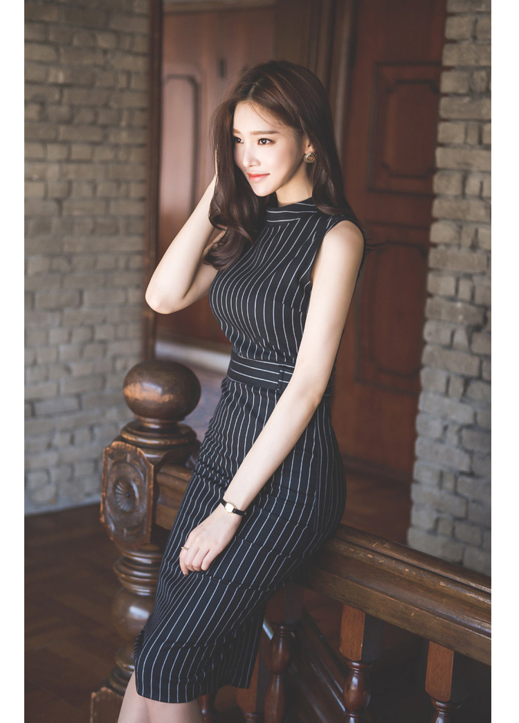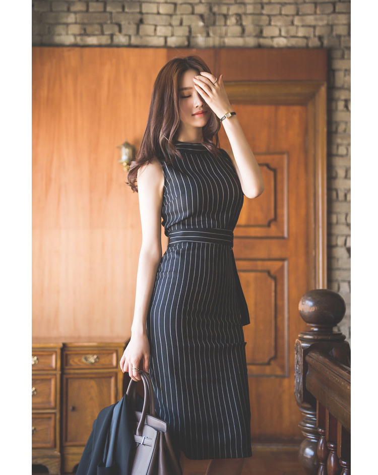 ノースリーブワンピースはタイトめで、女性らしい美しいシルエット。