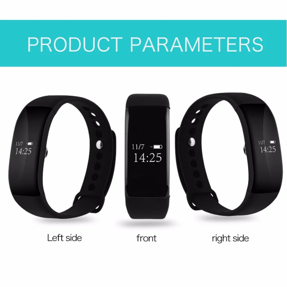 Function:Passometer,Social Media Notifications,Message Reminder,Sleep Tracker,Heart Rate Tracker,Call Reminder,Fitness Tracker