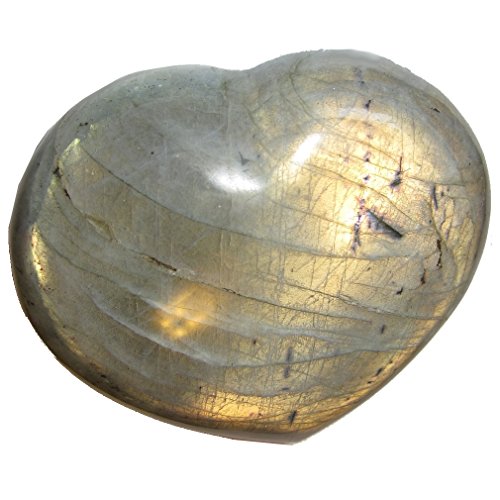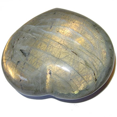 Your heart is made from beautiful and natural rainbow labradorite. This magical gemstone is a deep silvery color with intense rainbows that flash in the light. It is polished to a shine, yet retains lots of natural lines and rugged features. Receive this one of a kind beauty when you order from Satin Crystals.
