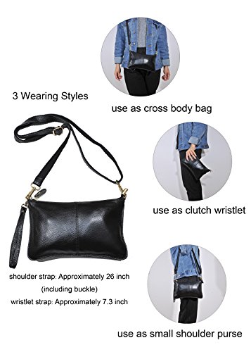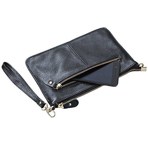 -. Title : Beurlike Womens Genuine Leather Smartphone Crossbody Bag, Zipper Clutch Purse Small Wristlet With 2 Strap