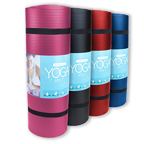 Studio : Brybelly Holdings, Inc Publisher : Brybelly Holdings, Inc Binding : Sports Product Description If you need a comfortable surface for Pilates, Yoga or other floor exercises, this high-density foam mat is the solution. Unlike our competitors, our mat measures 15 mm thick, which is almost 3/4 Inch. The mat's ridged texture creates a cooling, non-stick, moisture-resistant surface so you can work out with confidence. When not in use, each mat is easily rolled for storage. Best of all, the carrying handle makes it convenient to transport from home to the gym or yoga studio. This mat is great for absorbing impact, so it's a great source of body support and alignment during a workout. The non-slip bottom grips the floor, helping to prevent injuries. Perfect for gyms, schools, exercise classes and yoga studios, this ultra-thick foam mat can also serve as a sleeping pallet for camping trips or day care facilities. Available colors include black, red, blue and pink. Each mat measures 72 Inch long and 24 1/4 Inch wide. 0