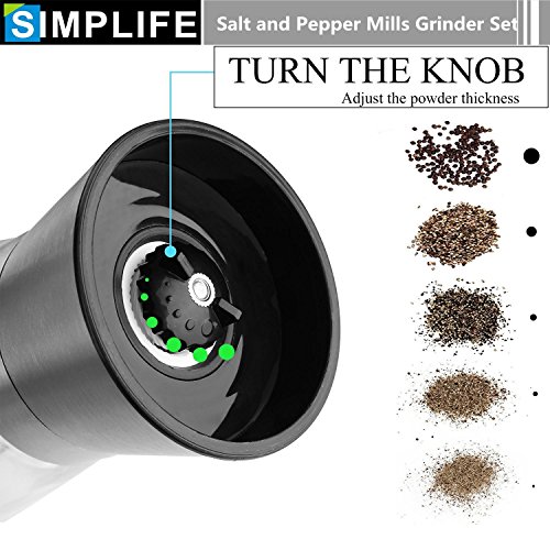 EASY TO REFILL - The stainless steel top screws open with a wide mouth for easy pouring of your favorite spices. Both spice grinders can hold up to ¾ cup of salt or pepper