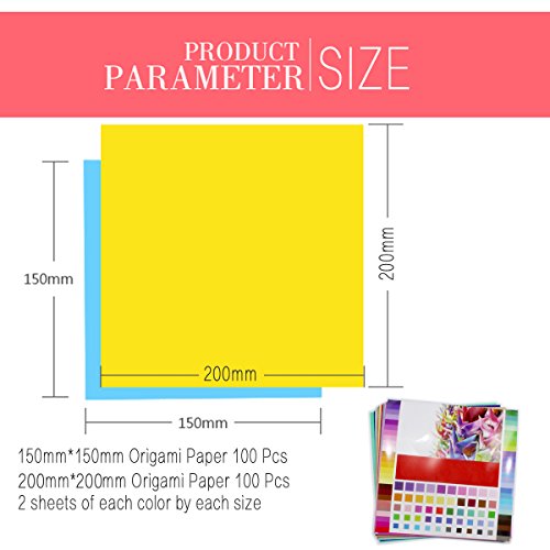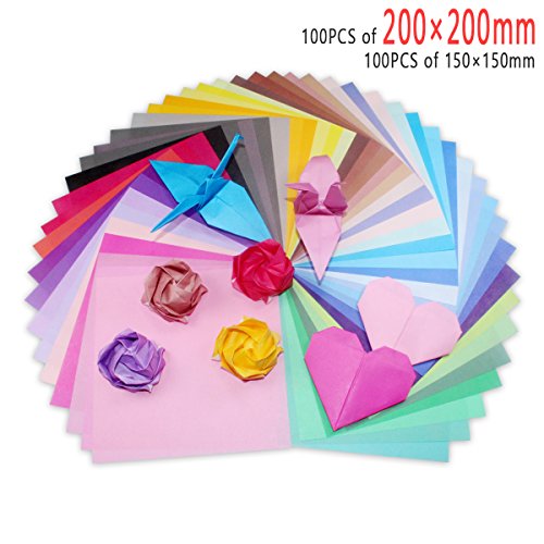 -. Feature : 1.Colorful:50 vivid colors, each color has 4 sheets, 2 sheets by 150×150mm and 2 sheets by 200×200mm. / 2.Dimension:100 sheets are 6×6 inch/150×150mm and other 100 sheets are 7.9×7.9 inch/200×200mm. / 3.Quality: Made of premium log pulp, they are very smooth with moderate hardness, which made them perfect for origami paper. / 4.Anti-stress game:Origami is a best way for fidget relieving. When you finish a crane or a bunch of paper rose, the sense of achievement would beat off all negative mood. / 5.Multi-purpose:It's suitable for kid's gift, a better way as puzzle game.You can also use your works as room decoration or to decorate the christmas tree.Maybe the next valentine's day, your girl friend would be surP.R.Ised by seeing your colorful paper rose!