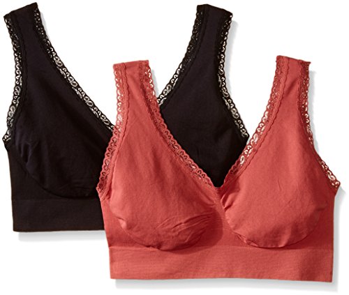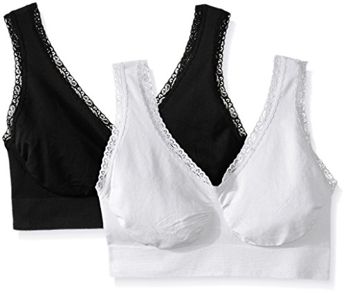 Ahh By Rhonda Shear Women's Bliss Lace Trim Seamless Bra, Black/Nude, 1X (Pack of 2)