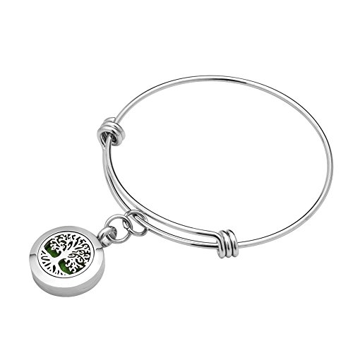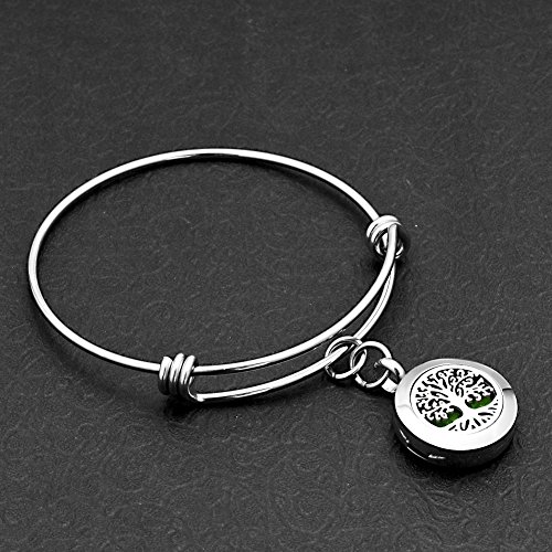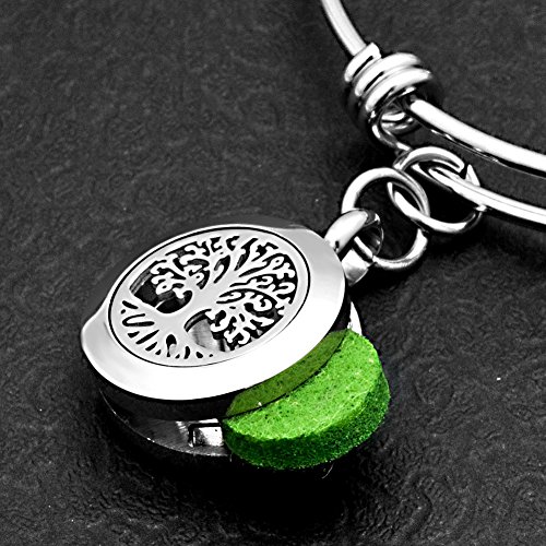 Third Time Charm Aromatherapy Essential Oil Diffuser Family Tree Of Life Locket Bracelet Stainless Steel Bangle Bracelets Jewelry, 10 Refill Pads (Tree 2)