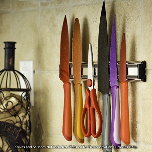This practical, unique and attractive kitchen gadget is a classy addition to any kitchen, craft room, garage, break room, or workshop. Declutter your drawers while preventing safety mishaps by mounting virtually any knife on the wall directly by the blade. This premium culinary tool is also great for mounting unordinary shaped utensils that cannot be safely stored in a drawer or knife block.