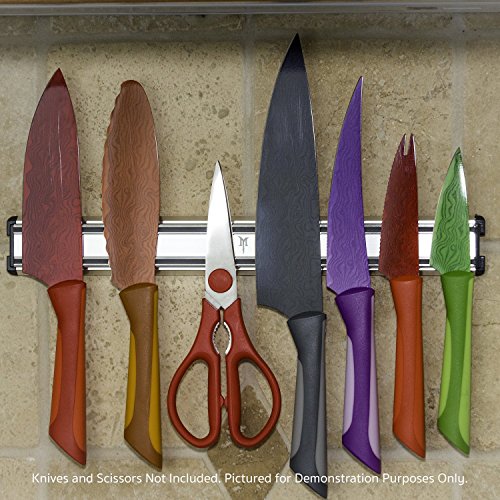 The Monster Magnetics® Magnetic Knife Holder is a commercial grade aluminum and stainless steel magnetic ribbon rack that is a practical storage solution that securely grips, yet easily releases knives, other steel kitchen utensils, small hand tools, crafting tools - this universal tool dock has endless uses!