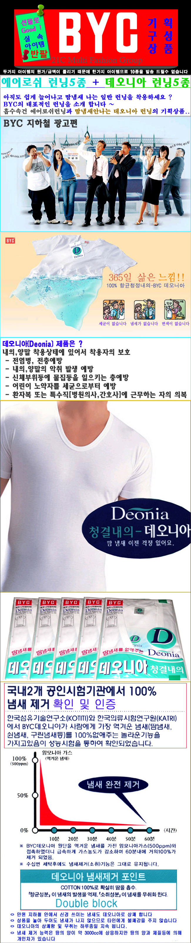 땀냄새가 안나는 BYC 데오니아 면 100% 런닝은 일반 런닝에서 느끼실수 없는 착용감과 쾌적함을 드립니다