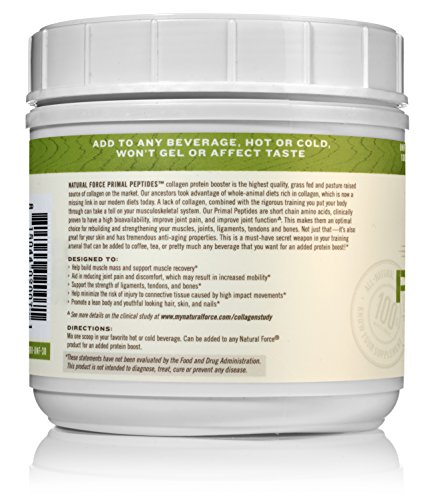 Natural Force® Primal Peptides paleo protein powder is the highest quality hydrolyzed collagen protein on the market. It is a 100% grass fed collagen protein powder which is also pasture raised.