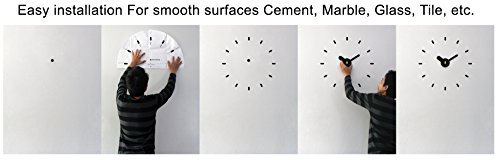 - Feature : The perfect modern wall clock; simple and stylish design enhances any decor / Easily installed on any surface, wallpaper, cement, drywall, glass, title, etc. / Use in office, dinning room, living room, or kids' room; AA battery not included / Only takes minutes to install, no tools required; template included for hour marker placement / MONEY BACK GUARANTEE