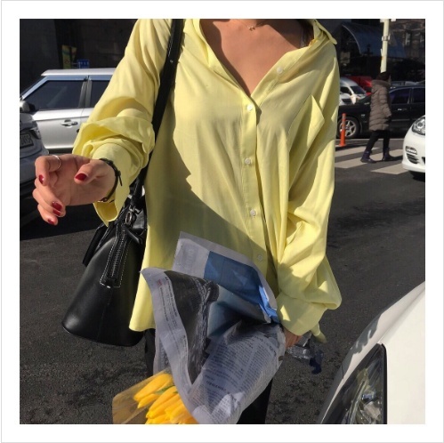 Women`s Loose Filtting Shirts Ivory Pink Mint Light Blue Lemon