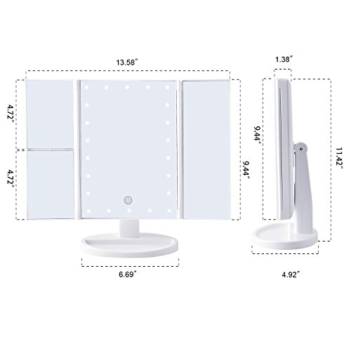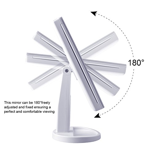180-DEGREE FREE ROTATION: The lighted makeup mirror stands on your countertop can be freely adjusted and fixed a perfect and comfortable viewing angle. Tri-fold and detachable design makes you can take it anywhere you go.