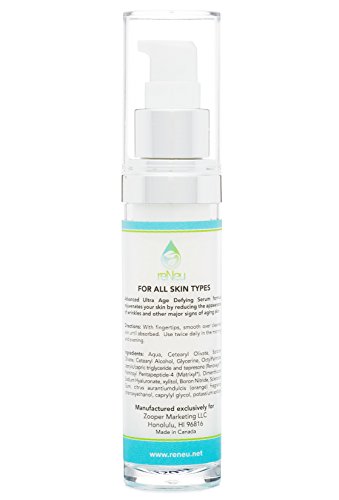 -. Binding : Misc. -. Brand : Reneu -. EAN : 0784672839013 -. Feature : ADVANCED ANTI AGING MOISTURIZER with the most effective ingredients targeting the 7 signs of aging in single product; Includes peptide cream Matrixyl, clinically proven Renovage, and Hyaluronic Acid / WRINKLE REMOVER Reduces fine lines, wrinkles,skin pigmentation and redness / FACE CREAM MOISTURIZER hydrates and fims skin and balances moisture throughout the day; Firms skin and increases elasticity resulting in improved skin texture and tone; minimizes pore size / LOOK RADIANT with healthier skin; Look younger and feel great with this simple to apply all in one face cream for women and face cream for men of all ages. A perfect beauty gift for all! / SAFE EFFECTIVE INGREDIENTS in a oil free, non-greasy serum that is Paraben Free and Non-Toxic -. Label : reNeu -. Manufacturer : reNeu -. MPN : 784672839013 -. PackageQuantity : 1 -. PartNumber : 784672839013 -. ProductGroup : Beauty -. ProductTypeName : BEAUTY -. Publisher : reNeu -. Studio : reNeu -. Title : reNeu Ultra Age Defying Serum - Best Anti Aging Cream -. UPC : 784672839013
