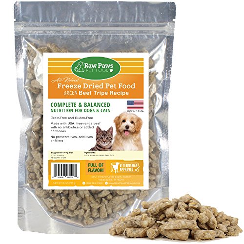 -. Title : Raw Paws Pet Premium Raw Freeze Dried Green Beef Tripe for Dogs & Cats - 100% Grass Fed - Made in the USA - Grain Free - All Natural